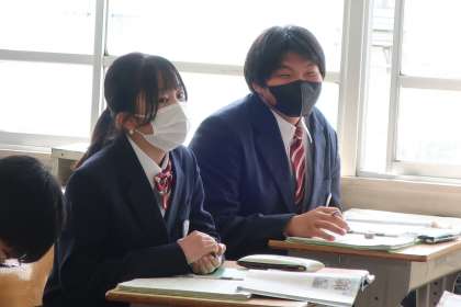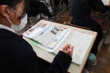 2年4組の社会・歴史分野の授業の様子です。