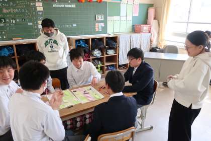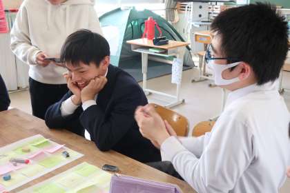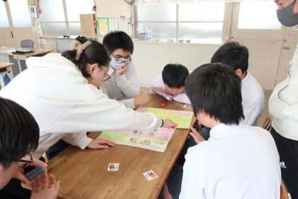 これまで学習してきた「防災」のまとめとして、各自が考えたマスの指令を持ち寄ったオリジナルの「防災すごろく」で学びを深めていました。