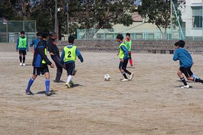 基礎トレーニングにテンポよく取り組んだあと、春の大会に向けてゲーム形式のメニューにたくさんの時間をかけ練習していました。