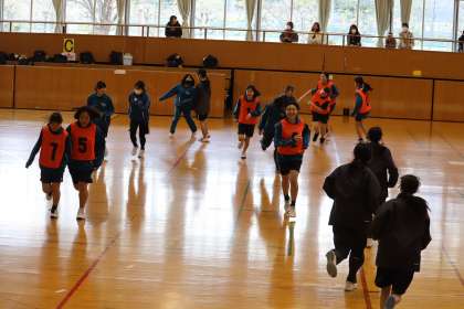 春分の日だった昨日、女子ハンドボール部は高岡公園体育館で行われた「強化練習試合」に参加しました。