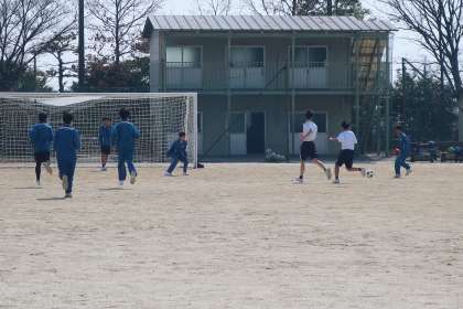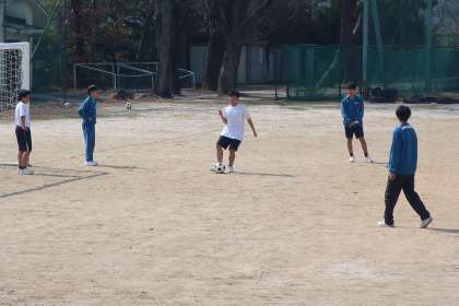 今年度最後の授業となったこの時間は、男女別にチームをつくり、サッカーのゲームに取り組んでいました。