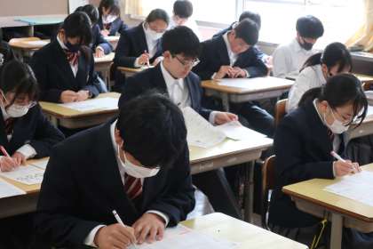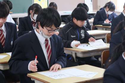 今年度最後の授業となったこの時間は、プリントを使って一年のまとめに取り組んでいました。