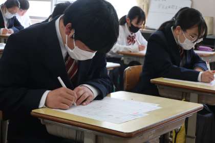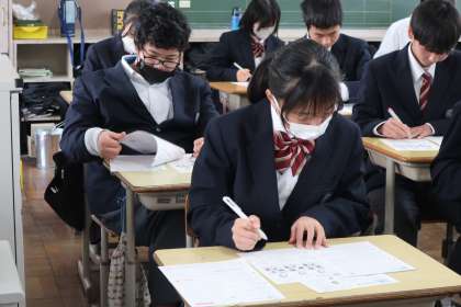 今年度最後の授業となったこの時間は、プリントを使って一年のまとめに取り組んでいました。