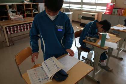今年度最後の授業となったこの時間は、学校生活で必要なピクトグラムを作成していました。様々なアイデアから作品が出来上がっていきます。
