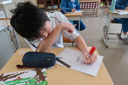1,2学級の美術の授業の様子です。