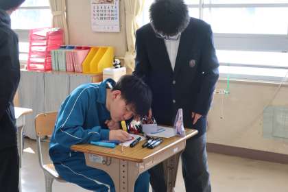 今年度最後の授業となったこの時間は、学校生活で必要なピクトグラムを作成していました。様々なアイデアから作品が出来上がっていきます。
