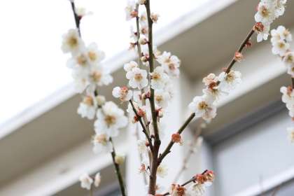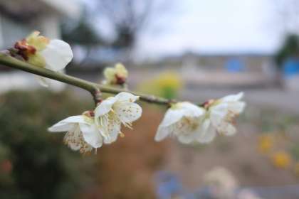 職員室・校長室南側の花壇に植わる梅の花がきれいに咲いています。穏やかな日差しのもと、いよいよ春が来たと感じさせてくれます。