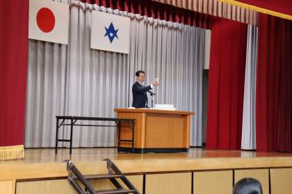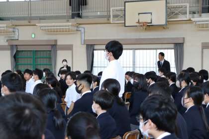 校長先生より、春休みや新学期のスタートにあたって意識してほしいことについて話がありました。参加型の内容であったため、生徒たちの反応も非常に良かったです。