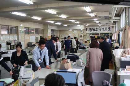 校長先生より学年スタッフの紹介があったあと、さっそく職員室の環境整備です。