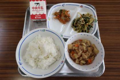 4/14 今日の給食 公開日 2025/04/14 更新日 2025/04/14 特別活動 今日の献立は ————— 高野豆腐のうま煮、おかかあえ、さくらえびのかき揚げ、ごはん、牛乳 でした。 *エネルギー:808kcal たんぱく質:30.0g
