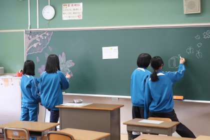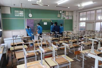 入学式・始業式の会場となる体育館のセッティング、1年生教室の飾りつけ、各クラスへの教科書の配布など、それぞれの分担でしっかりと活動していました。
