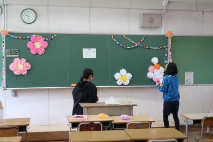 入学式・始業式の会場となる体育館のセッティング、1年生教室の飾りつけ、各クラスへの教科書の配布など、それぞれの分担でしっかりと活動していました。