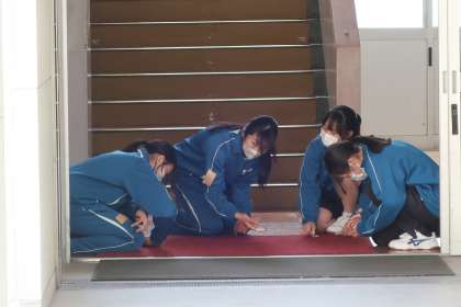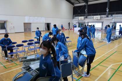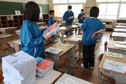 入学式・始業式の会場となる体育館のセッティング、1年生教室の飾りつけ、各クラスへの教科書の配布など、それぞれの分担でしっかりと活動していました。