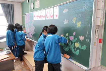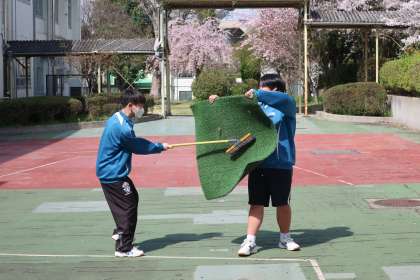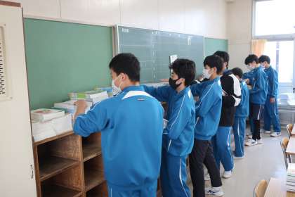 入学式・始業式の会場となる体育館のセッティング、1年生教室の飾りつけ、各クラスへの教科書の配布など、それぞれの分担でしっかりと活動していました。