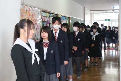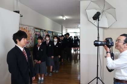 生徒の身分証となる「個人カード」に掲載する顔写真の撮影が行われました。少しの緊張と少しの照れくささもありましたが、一年間使用する写真を撮影することができました。