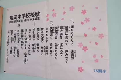 「中学校の生活で常に意識してほしい」「通っている高岡中学校に誇りをもってほしい」という願いから、『後輩たちへの大切な贈り物』として卒業生が残してくれました。