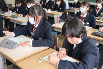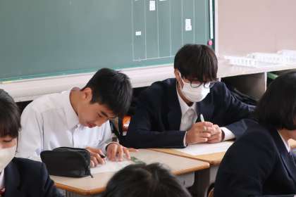 写真は、2年4組の英語の授業の様子です。