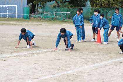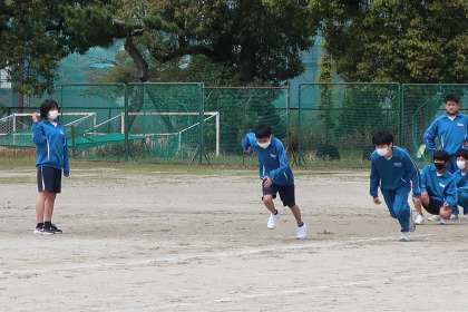 体力テストの50m走のタイム計測が行われていました。この結果をもとに、体育祭リレー種目の作戦を練っていきます。