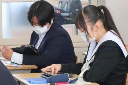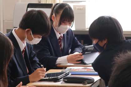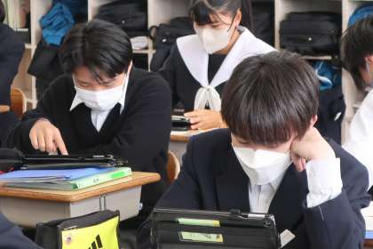 写真は、3年1組の社会の授業の様子です。