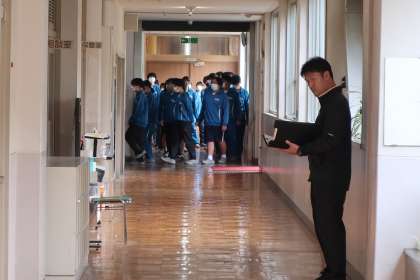 今回は教室から校舎を出るまでの避難経路を実際に移動して確認しました。