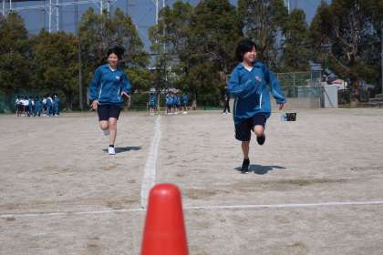 体力テストの50m走のタイム計測が行われていました。この結果をもとに、体育祭リレー種目の作戦を練っていきます。