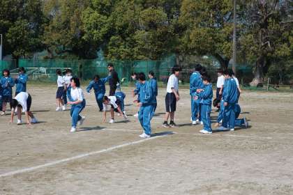 体力テストの50m走のタイム計測が行われていました。この結果をもとに、体育祭リレー種目の作戦を練っていきます。
