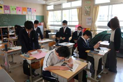 先生インタビューを終え、それぞれがまとめの掲示物を作成していました。納得する掲示物にしようと、真剣に取り組んでいた姿が印象的でした。