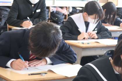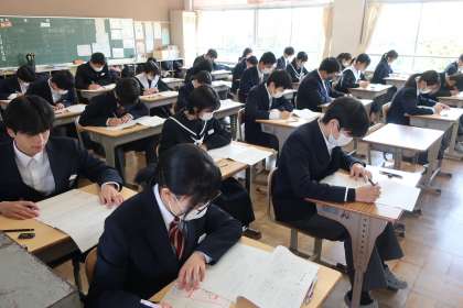 本日行われた「全国学力・学習状況調査」、3年3組の様子です。