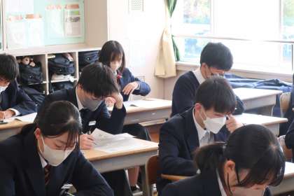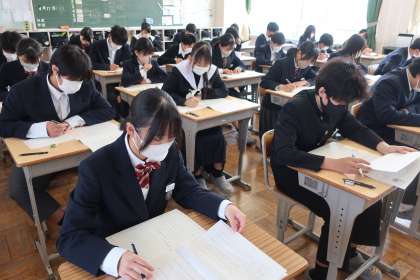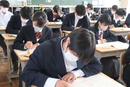 本日行われた「全国学力・学習状況調査」、3年1組の様子です。