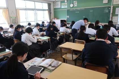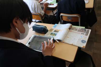 2年4組の社会・歴史分野の授業の様子です。