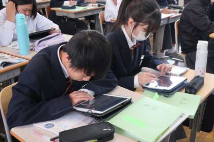 2年4組の社会・歴史分野の授業の様子です。