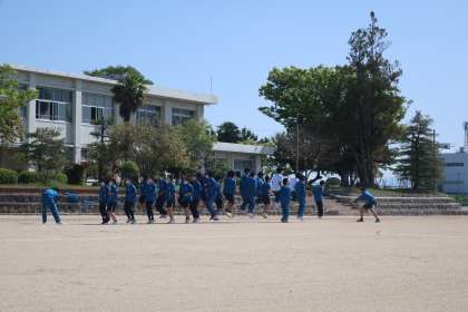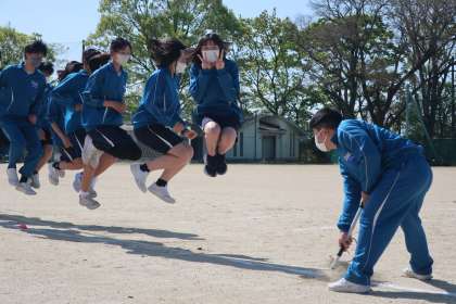 体育祭の競技種目の長縄とびの練習に取り組んでいました。