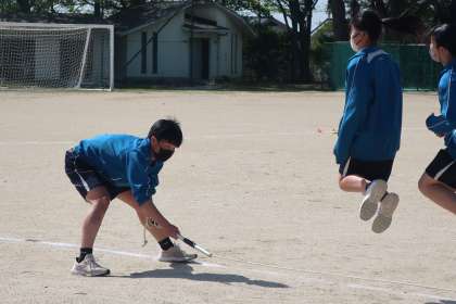 体育祭の競技種目の長縄とびの練習に取り組んでいました。