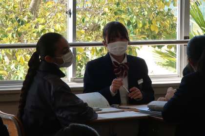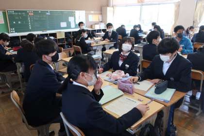 2年生の復習をしながら、「式の展開と因数分解」の単元の学習に取り組んでいました。