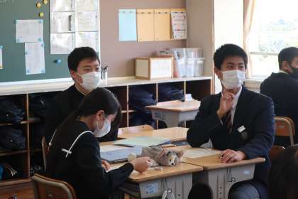 4/21 3-3 さっそく新しい学習に 3 公開日 2025/04/21 更新日 2025/04/21 各学年から 3年3組の数学の授業の様子です。 2年生の復習をしながら、「式の展開と因数分解」の単元の学習に取り組んでいました。