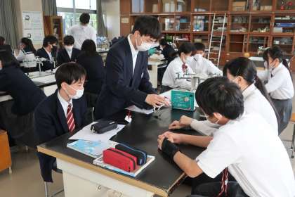 4/22 3-5 実験で確かめる 4 公開日 2025/04/22 更新日 2025/04/22 各学年から 3年5組の理科の授業の様子です。 「電流が流れる水溶液は?」をテーマに、実験を通して立てた予想を確かめていました。