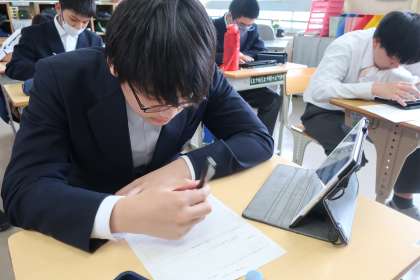 4/23 1,2学級 万博を調べる 4 公開日 2025/04/23 更新日 2025/04/23 各学年から 1,2学級の社会の授業の様子です。 現在開催されている『大阪万博』について、興味あることを学習用タブレットで調べていました。どんどん興味が湧いていく様子が伝わってきました。