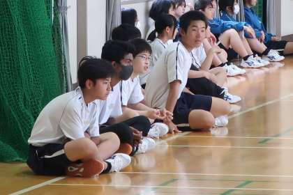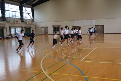 新体力テストの種目である「シャトルラン」の測定です。仲間の声援を受けながら、自身の体力を確認していました。