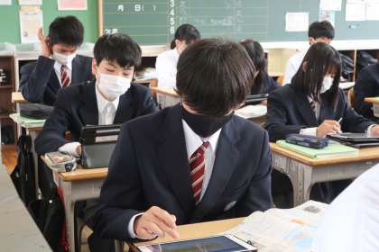 「第一次世界大戦の原因について考えよう」をテーマに、これまでの学習もふまえ、自分の考えをまとめていました。