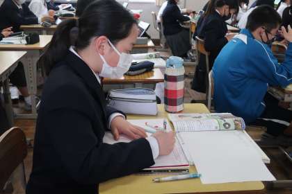 「中国文明のつながりを考えよう」をテーマに、それぞれが自分の考えをしっかりもって授業に臨んでいました。