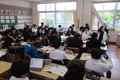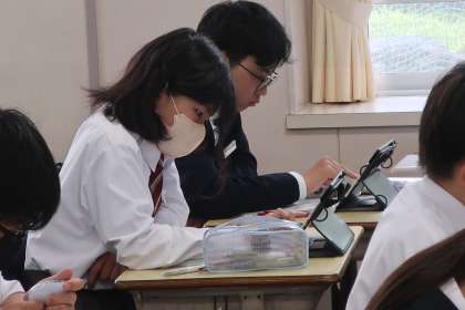 「中国文明のつながりを考えよう」をテーマに、それぞれが自分の考えをしっかりもって授業に臨んでいました。