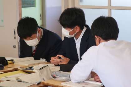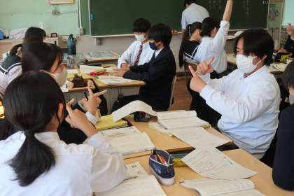 「握手」を題材に、登場人物の思いに迫るため、描写から読み取れることを話し合っていました。