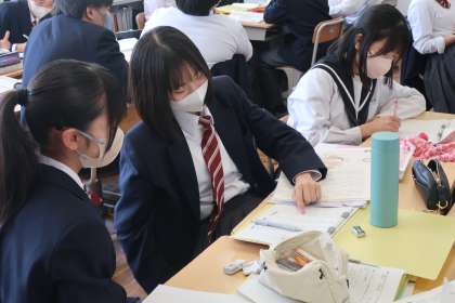 「握手」を題材に、登場人物の思いに迫るため、描写から読み取れることを話し合っていました。