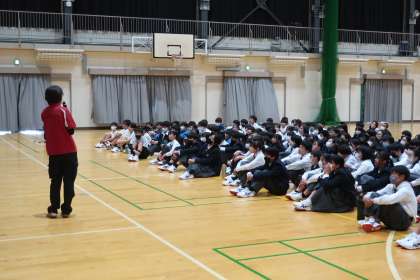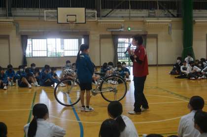 本日の2・3限に1年生を対象に行われた『自転車安全運転講習会』。豊田市交通安全学習センターより講師の方をお招きして実施しました。