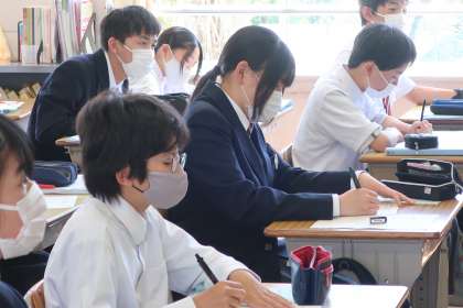 4/25 3-5 確実に習得するために 3 公開日 2025/04/25 更新日 2025/04/25 各学年から 3年5組の数学の授業の様子です。 式の展開の学習で、「乗法の公式を覚えよう」をテーマに、多くの問題を解いて確実にマスターしようと取り組んでいました。