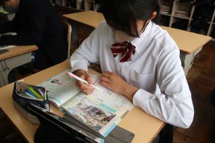 第一次世界大戦後の学習で、「東アジアの人々が求めたものは何か考えよう」をテーマに、自分の考えをしっかりもって授業に臨んでいました。