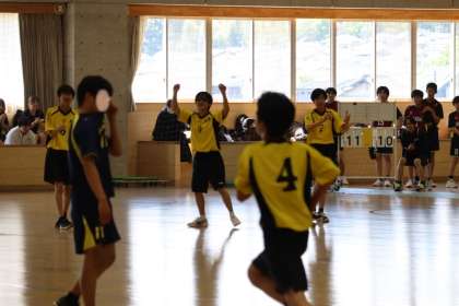 今回は美里中学校との合同チームで出場し、たくさんの試合を経験できました。日頃から一緒に練習している仲間の応援はもちろん、本校女子チームの声援、美里中学校の選手のバックアップもあり、非常に接戦した試合運びとなりました。