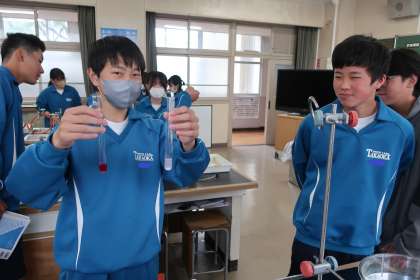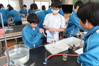 炭酸水素ナトリウムを加熱して発生した気体や新たにできた物質の性質を調べていました。
