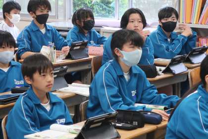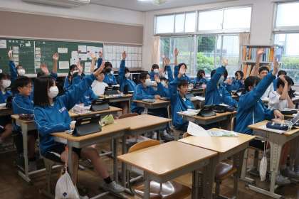 「縄文時代と弥生時代の違いを調べよう」をテーマとした調べ学習を始めるため、予想を立てたり、調べ方の確認を行っていました。