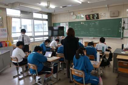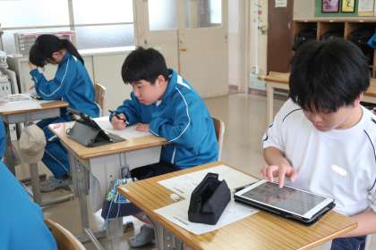 これまでに校内のいろいろなものの長さを調べてきたことの発展系として、今回は面積を求める学習に取り組んでいました。